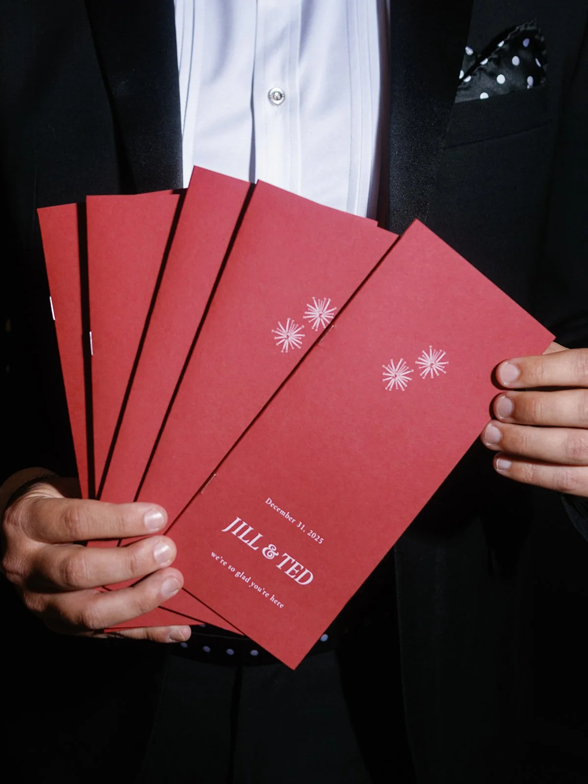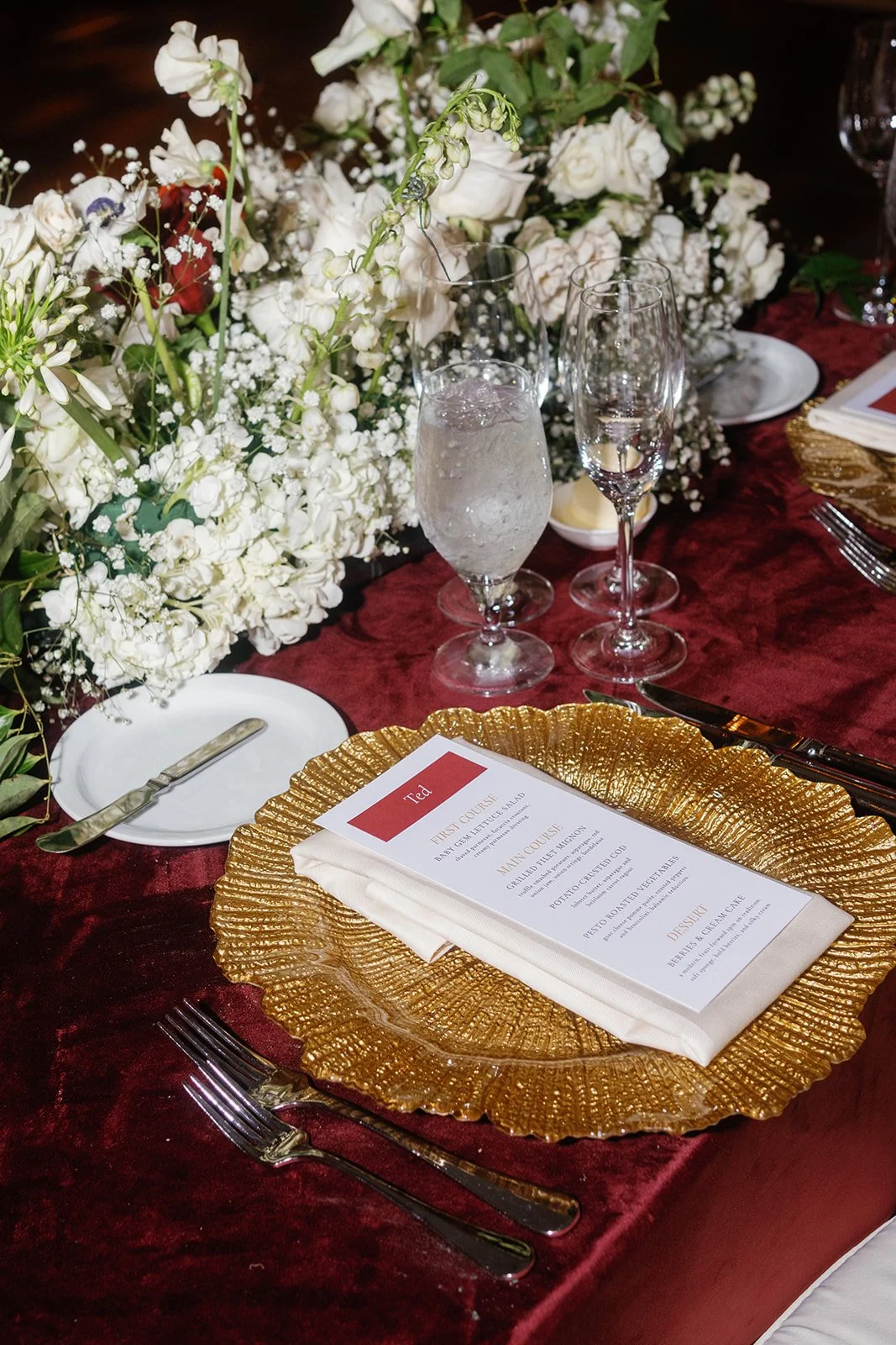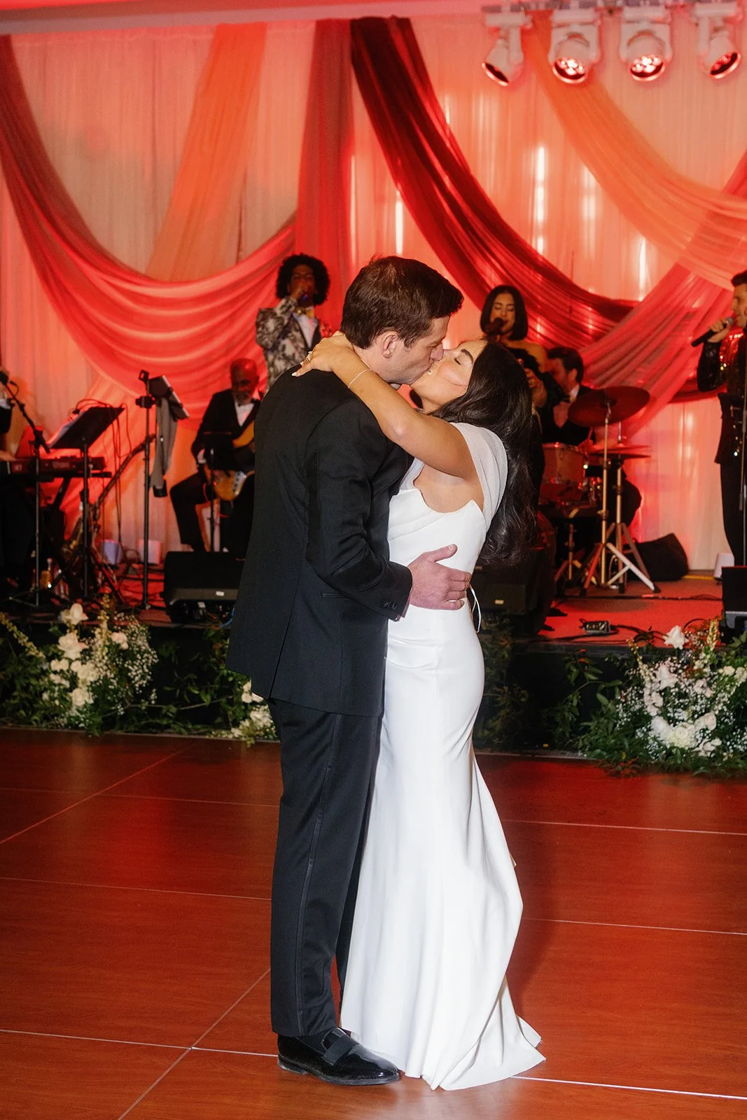 Elegant, festive, and effortlessly romantic, Jill & Ted’s New Year’s Eve wedding at the Mandarin Oriental Boston blended timeless sophistication with celebratory energy. Inspired by the place their story began, Lucky’s Lounge, subtle touches of red were thoughtfully woven into the design, adding warmth and meaning without leaning into holiday themes. A refined palette of lush greens, crisp whites, and delicate pops of red created a look that felt both seasonal and elevated.