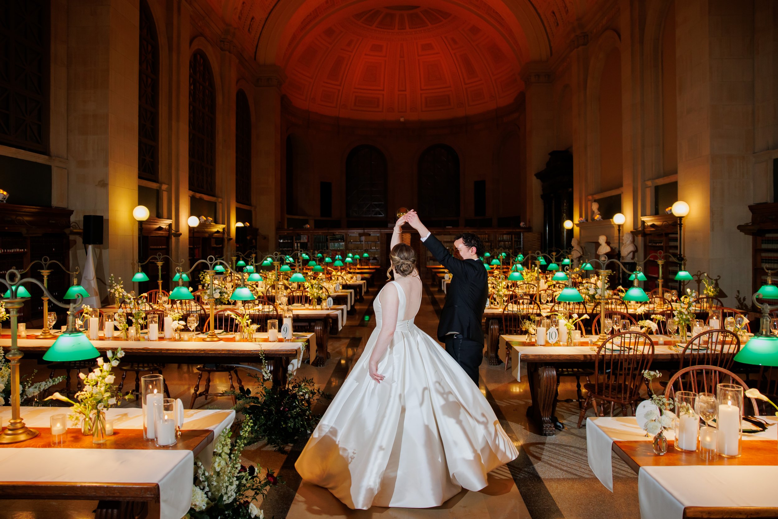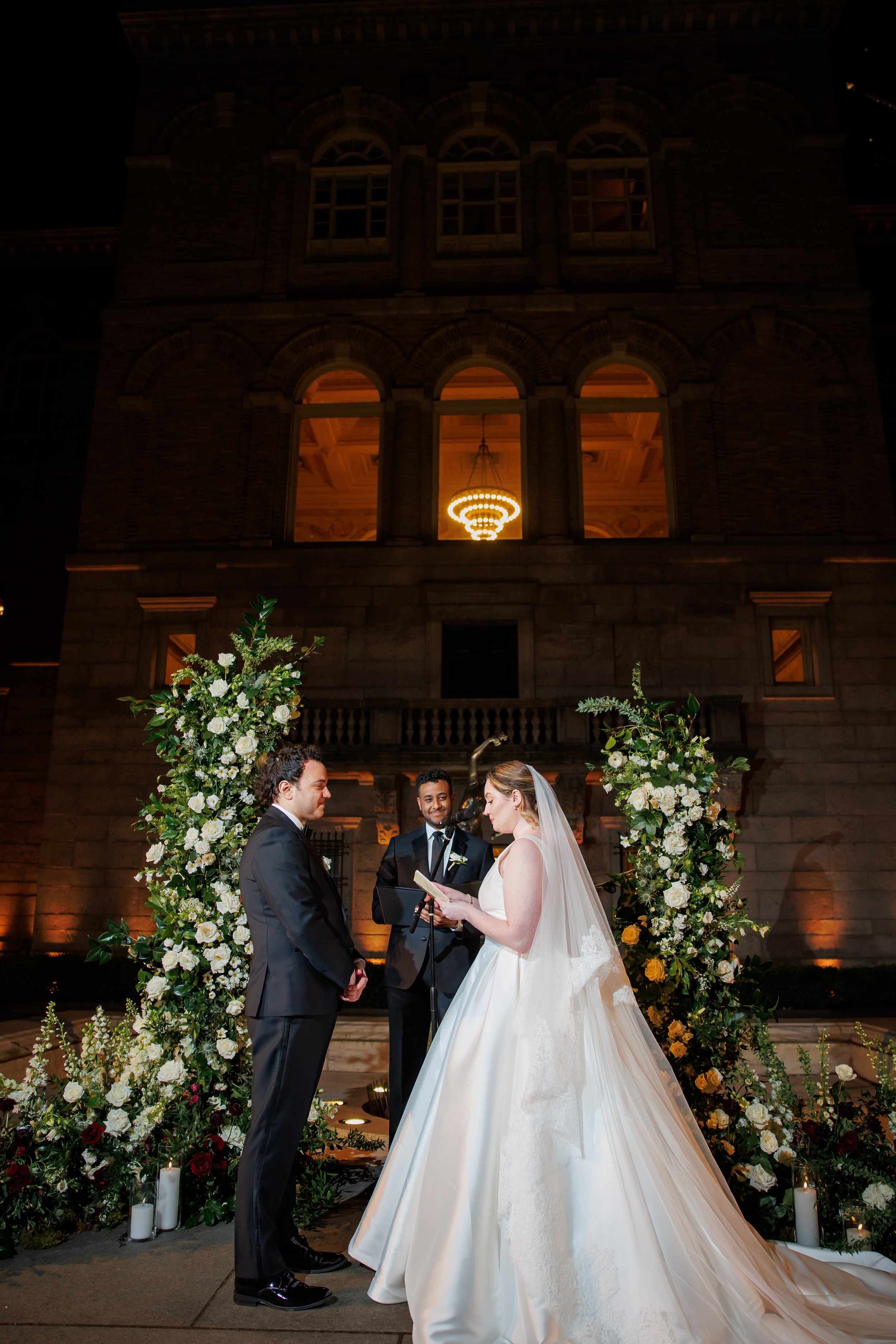 Set within the iconic Boston Public Library, Katelyn & Adam’s wedding was a seamless blend of architectural grandeur and intentional design. Their ceremony unfolded in the courtyard at night, where soft lighting and the open-air setting created an atmosphere that felt both intimate and cinematic against the historic stone backdrop. From there, the celebration carried effortlessly into the reception, with every detail thoughtfully composed to enhance the guest experience without competing with the space itself, resulting in a wedding that felt elevated, refined, and deeply personal.
